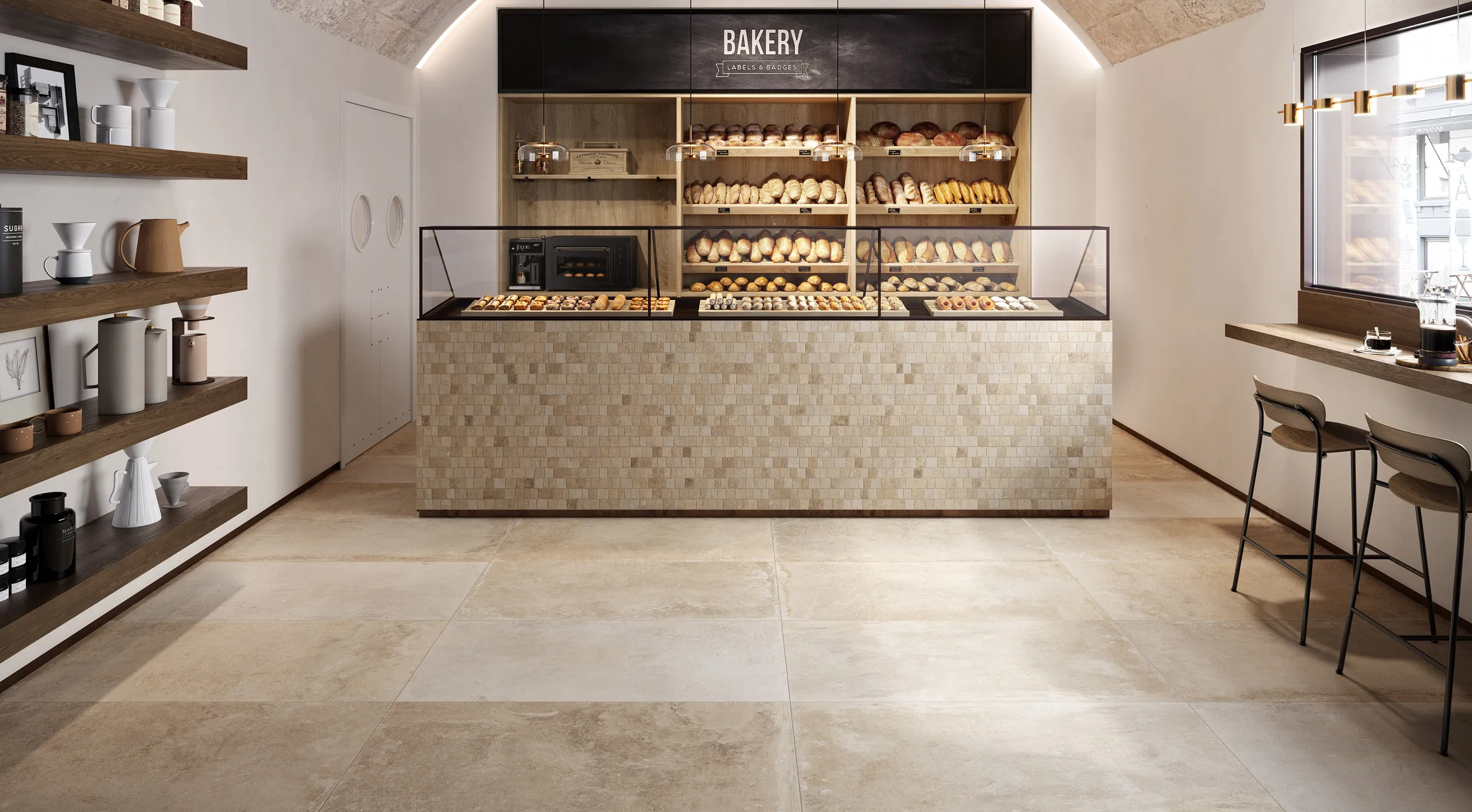 The color palette consists of four shades: Light Grey, Grey, Cream, and Multicolor, allowing for easy matching with any setting. The 100x100, 120x60, 60x60, and 30x60 sizes with a natural surface for interior flooring and wall coverings have a soft, easy-to-clean surface that is also suitable for use in public spaces. (R10).