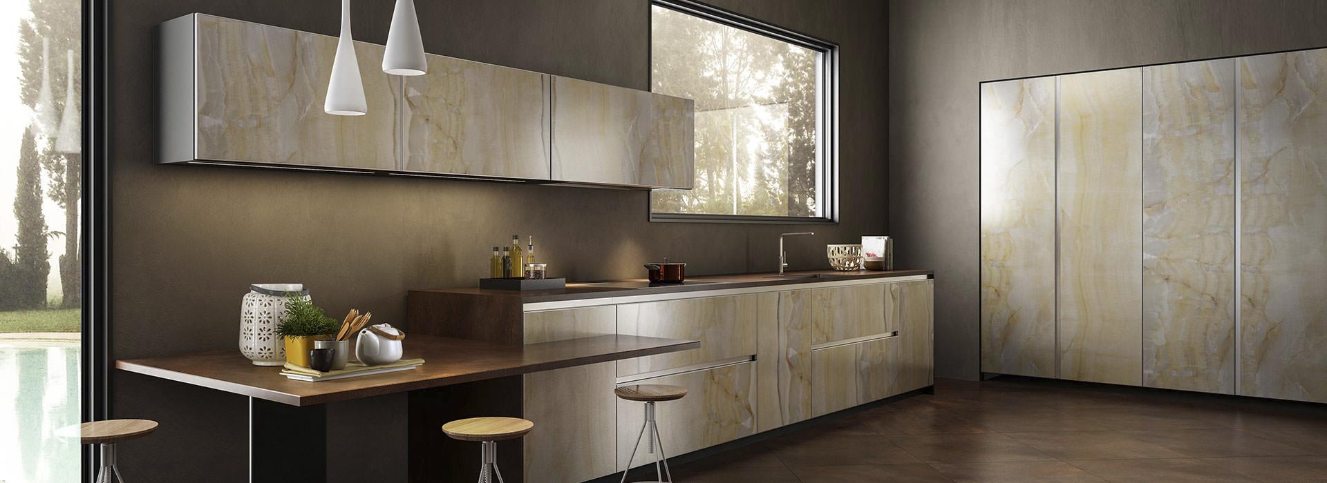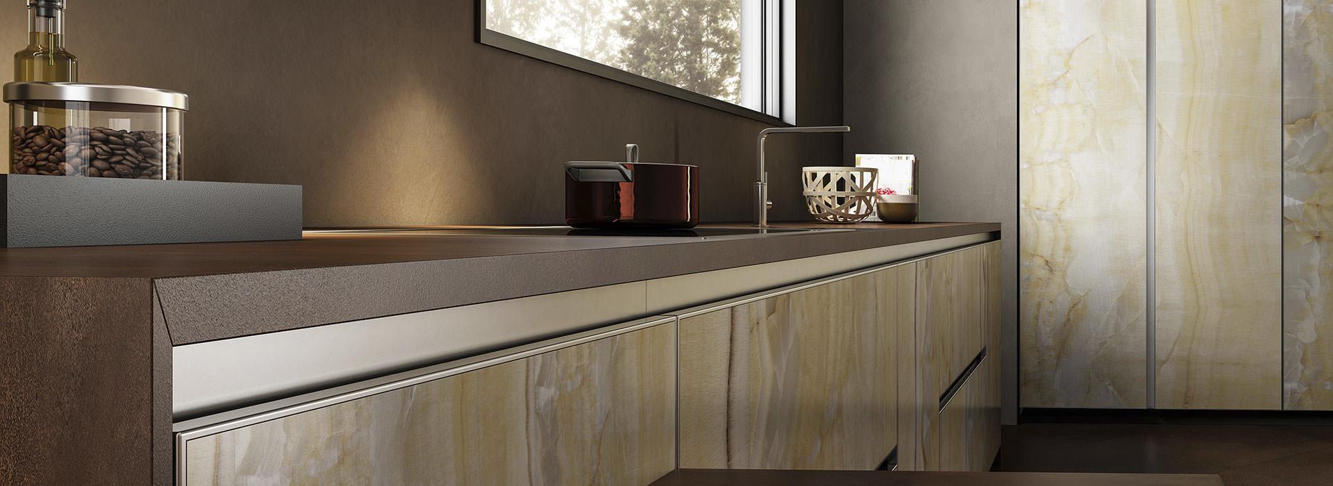 The Preciosity line of slabs, an innovative material, overcomes the boundaries between surfaces for architecture and furniture. The combination of strength and lightness, combined with the enormous formats and thin thickness, allows the creation of floors, coverings, furnishings and finishes. In addition to offering high-quality surfaces, we also offer a unique design that stands out in every detail.