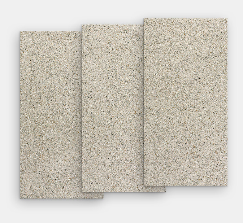 Powerful presses compact the slabs; extremely high firing temperatures weld and irreversibly fuse the minerals, creating a new material: hard, compact, waterproof, unassailable.