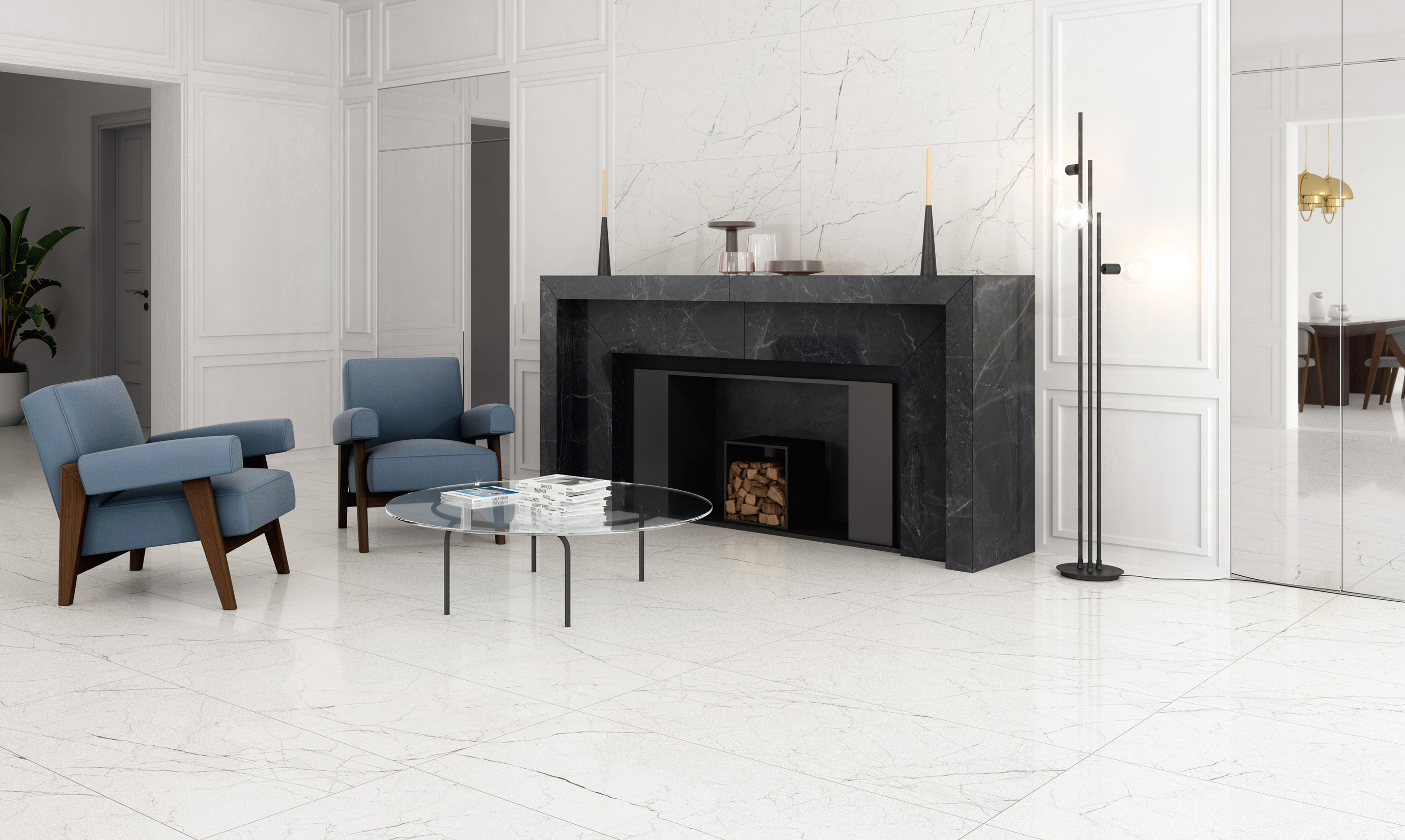 Arcadia represents porcelain stoneware that emulates the appearance of marble in a new contemporary perspective. It is based on a careful selection of precious and evocative varieties, characterized by directional veining and intense color contrasts.