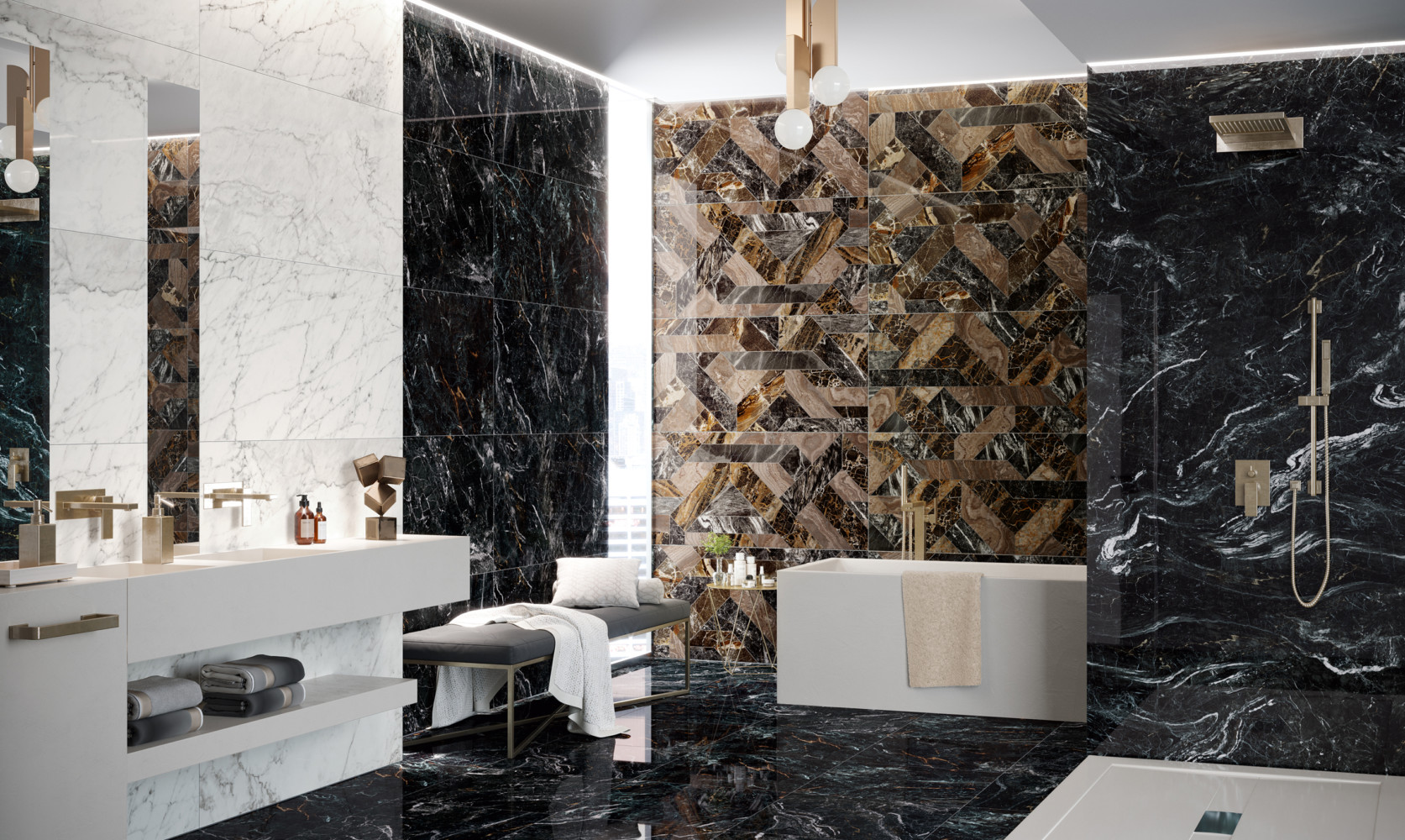 Rhapsody is a complete project for floors and walls that combines colors and textures inspired by the most fascinating marble essences in the world. The pure whites and deep blacks are enhanced by contrasting veins, while the exotic ones feature dominant cobalt or important golden veins.