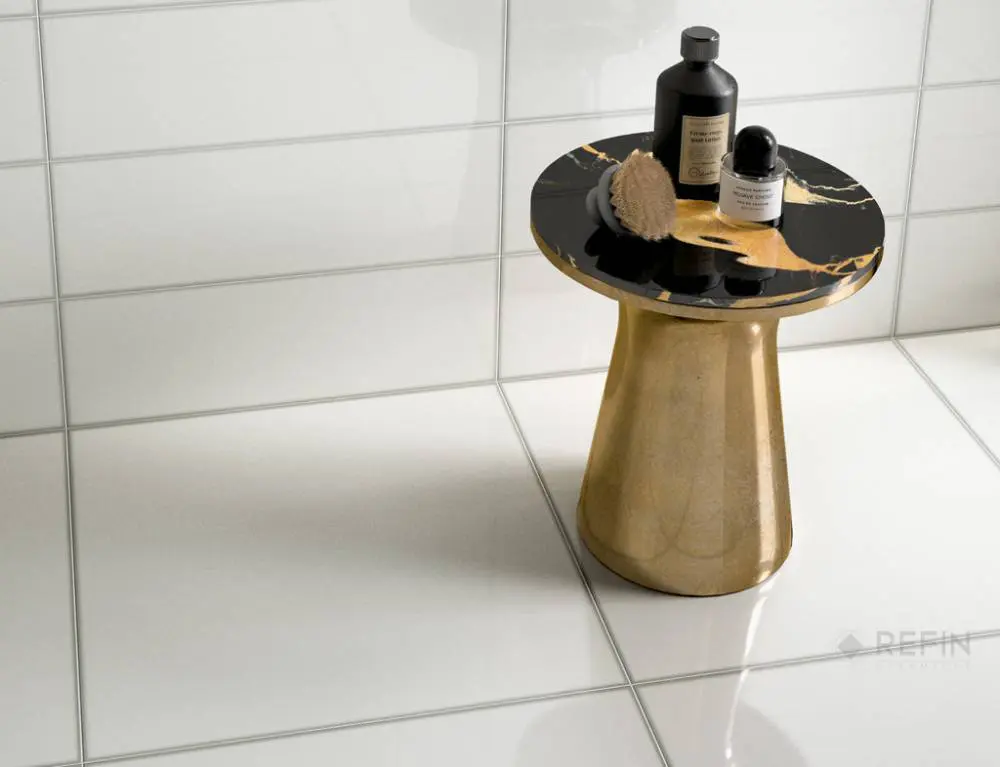 The VETRI series by Refin is a collection of ceramic tiles that celebrates the transparency and shine of glass, offering a contemporary and versatile aesthetic solution for various interior spaces. This series combines the visual delicacy of glass with the durability of ceramic, creating surfaces that reflect light and add depth to environments.