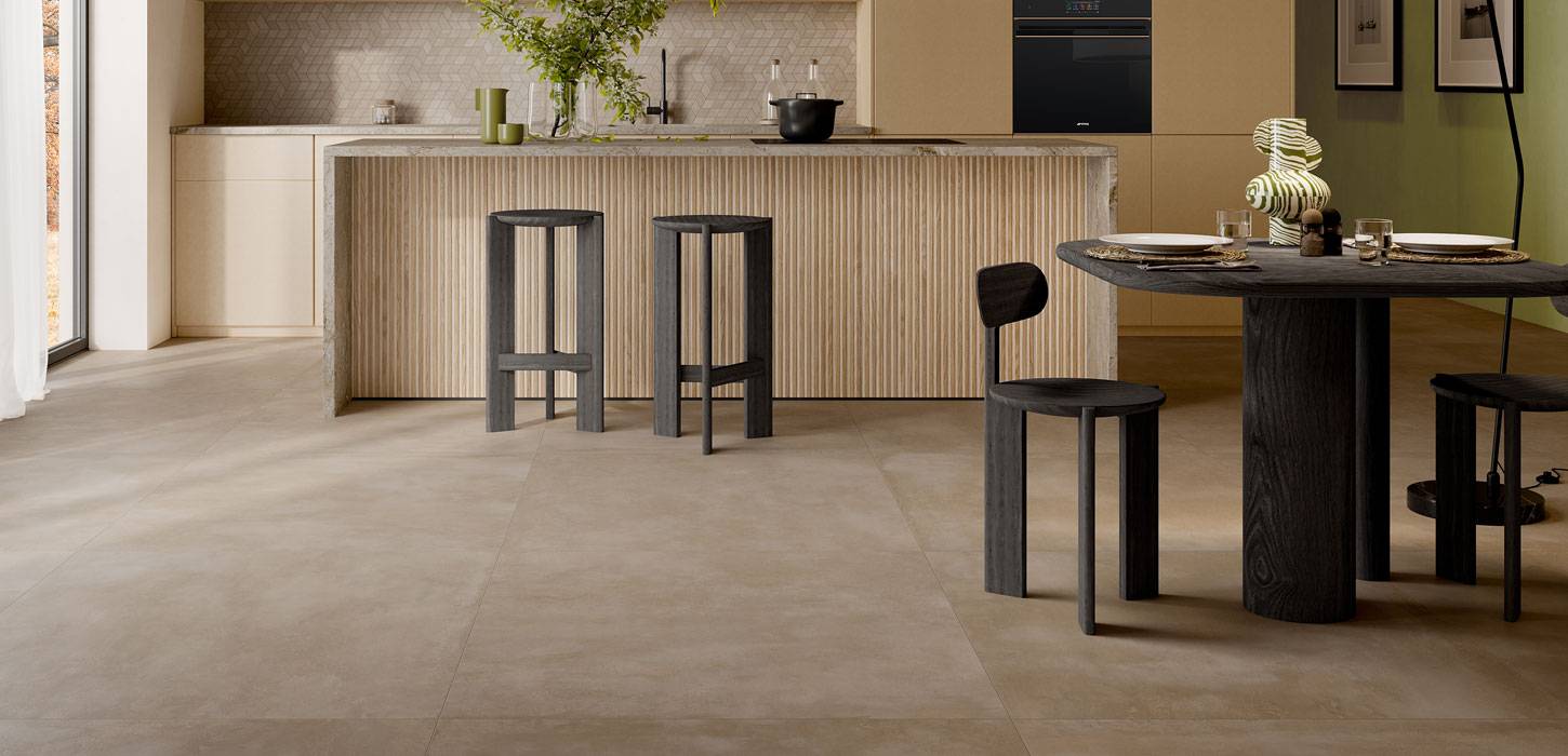 Concrete-effect stoneware is a versatile and trendy solution for covering or flooring residential and commercial spaces.