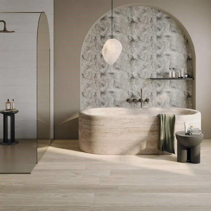 more pronounced ones like Ecru, Honey, and Nut. Available in 24x150 cm and in the brand new rectified 23.4x148 cm format, the series is completed with