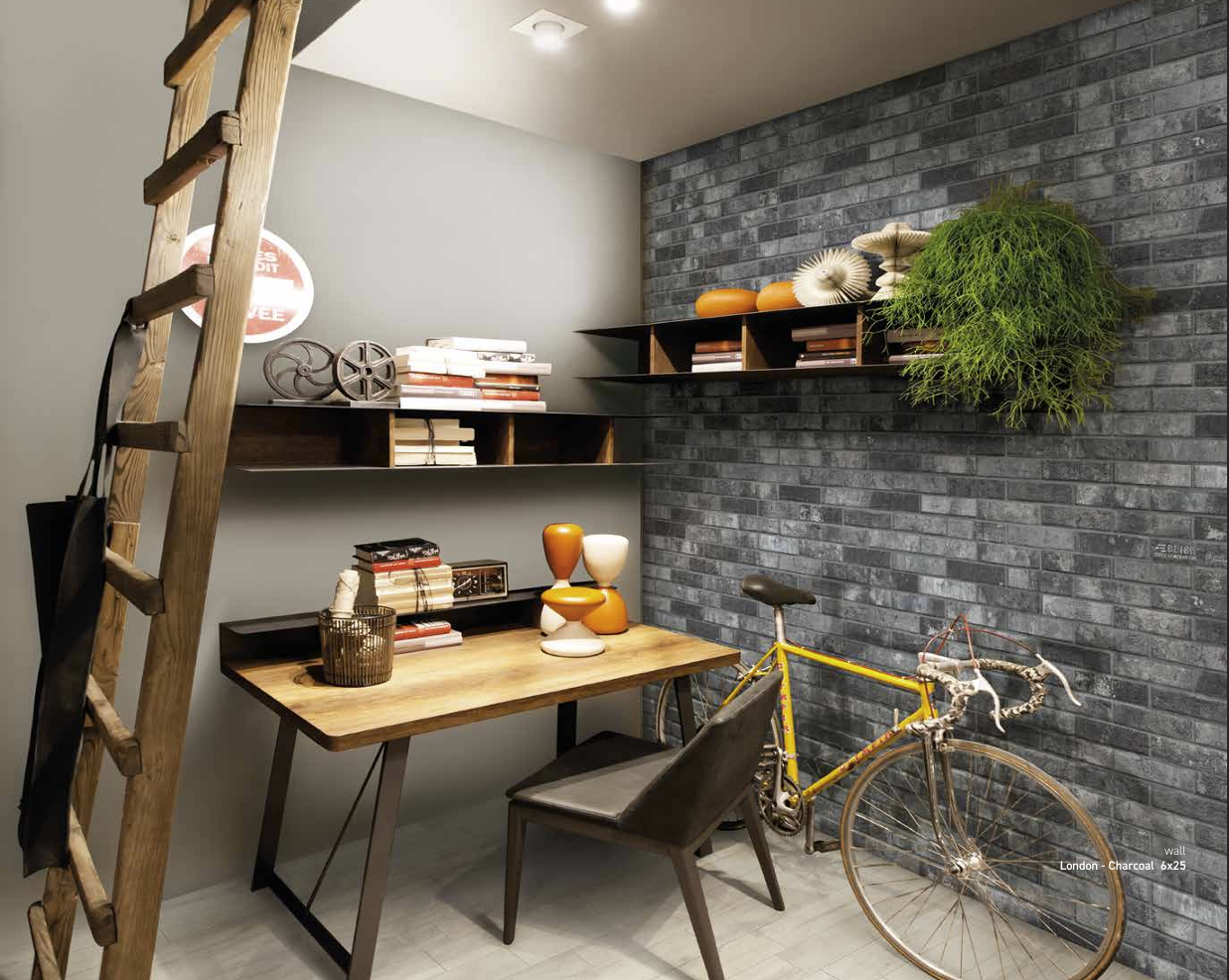 Brick Generation porcelain stoneware tiles are enriched with a new offering. The London ceramic tile is inspired by the production of handmade bricks in a London kiln. It dates back to the early 1900s, and the surfaces are shaded and multicolored.