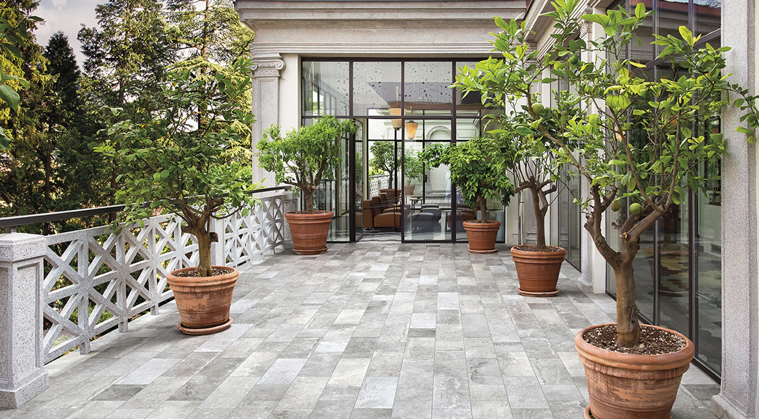 The 30x60, 20x40, and 20x20 outdoor floors with a non-slip surface (R11), as well as the 60x100 in 20 mm thickness, allow you to step outside onto terraces, balconies, and gardens while maintaining a uniform aesthetic throughout the home.