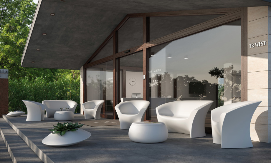 Comfortable 3-seater sofa with comfortable and contemporary lines integrates the “Ohla” family to create elegant relaxation areas and can also be combined with “T Ball”, using them as a coffee table._x000D_