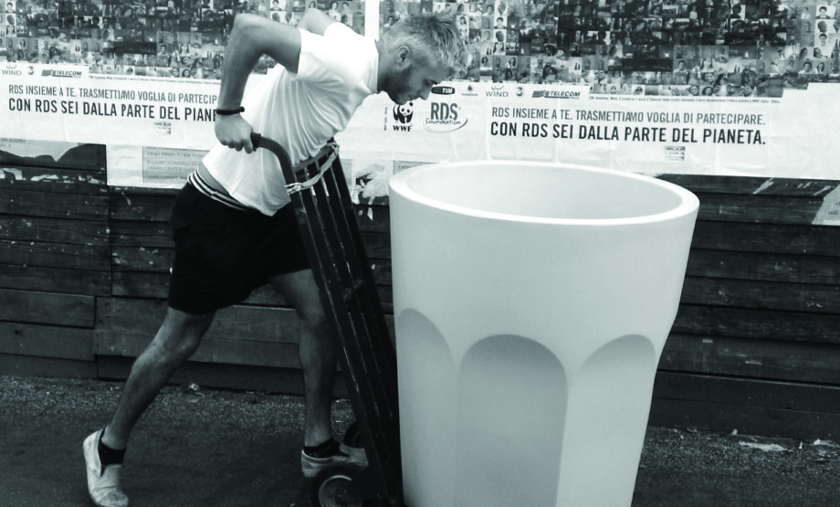Its dimensions make it particularly suitable for medium/large sized plants or plant decorations, or to become the reference point of a party when necessary, a huge glass filled with ice where you can cool the bottles. Cheerful, surprising, casual and in a luminous version suitable for convivial situations in public gathering spaces.