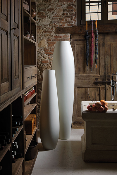The simple and essential shape makes it adaptable to any living context or public space, choosing to position it in one direction, or upside down. Its sinuous and slender shape makes it particularly adaptable to any indoor and outdoor context, both classic and modern. The impact of several "Nicole" positioned on avenues and corridors is captivating. Also available in a luminous version.