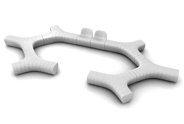 Modular bench designed for large indoor or outdoor spaces, solid and resistant to atmospheric agents, it is characterized by grooves that, in addition to creating an elegant texturization, give continuity when multiple modules are placed together._x000D_